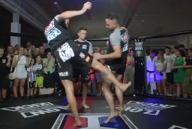 強烈なローキックに背を向けて痛がる選手も(『LOW KICK CHAMPIONSHIP』より)