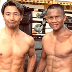 魔娑斗(左)とブアカーオ(右)のバキバキボディ(@masato.official)