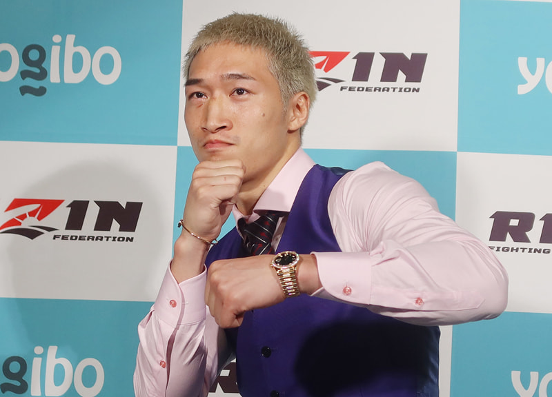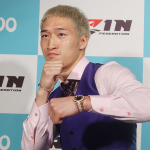 会見でシャドーを見せ意気込む安保瑠輝也