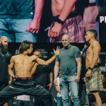 WWE中邑真輔のポーズを決める鶴屋(UFC公式YouTubeより)