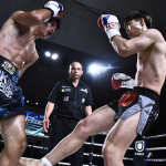 佐藤九里虎(左)とナンペット・チョーチャンピオン(右)が対戦
