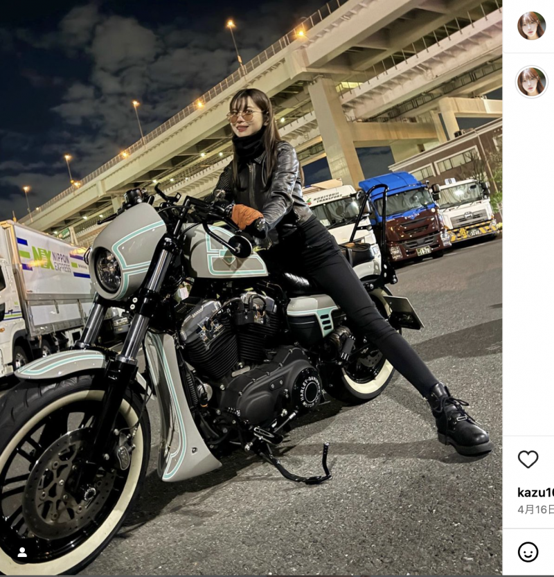 七瀬なな、ハーレーのスポーツスター XL1200Xでツーリングした一コマ(七瀬ななインスタより)