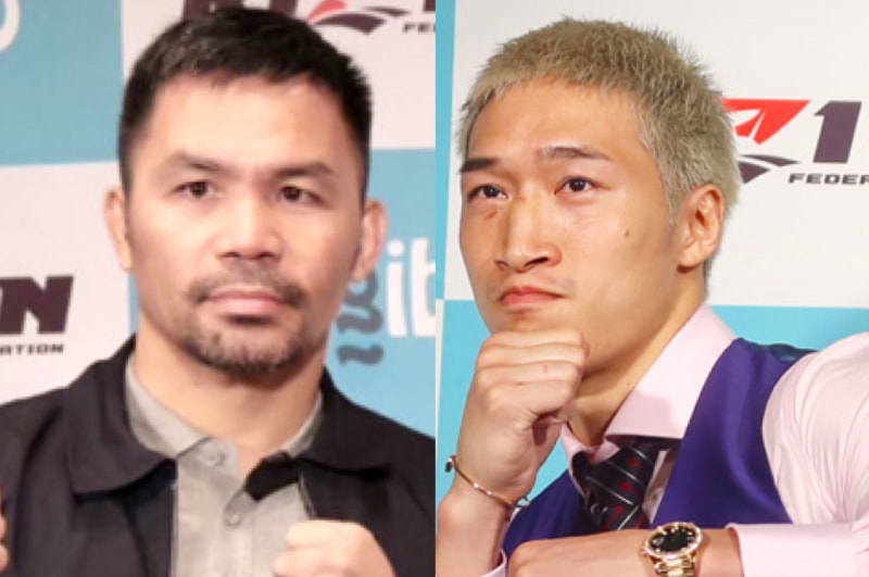 パッキャオ(左)と安保(右)が、ボクシングに準じたルールで対戦する