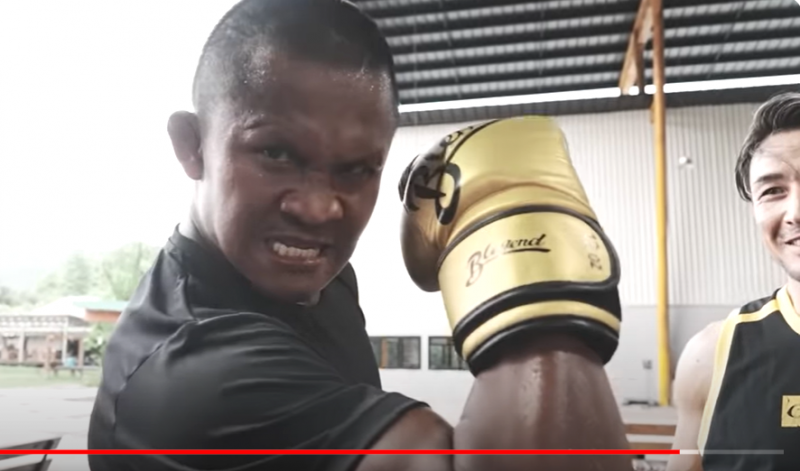 ブアカーオは、マッスルポーズで力を誇示(『魔裟斗』チャンネル)