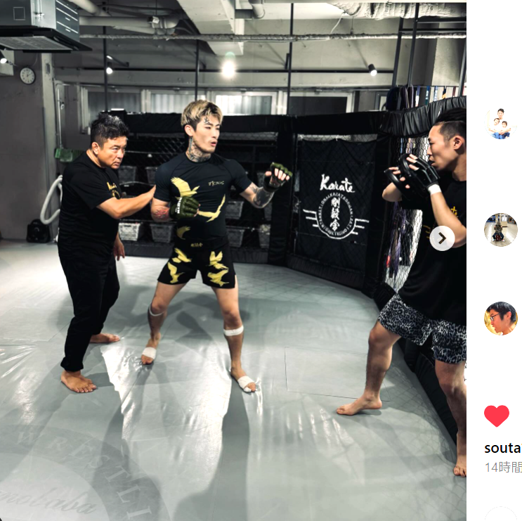 剛毅會空手の岩﨑達也宗師の指導を受ける平本(@ren___k1 )
