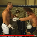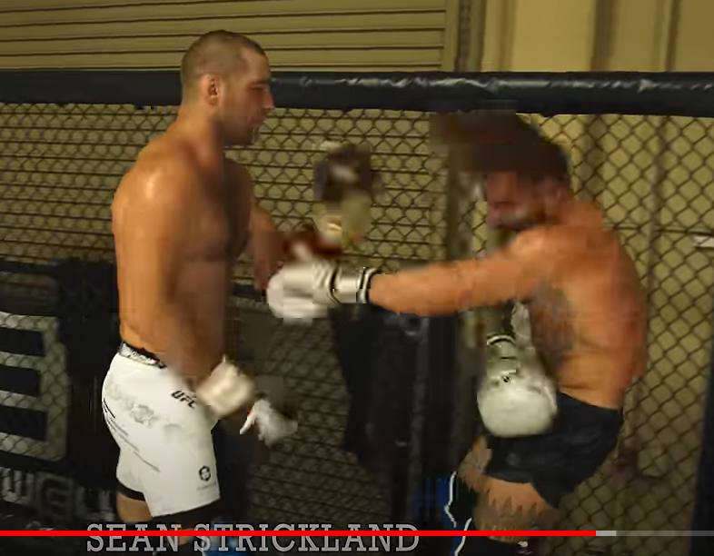 アッパー連打で顔を跳ね上げる@SeanStricklandUFC