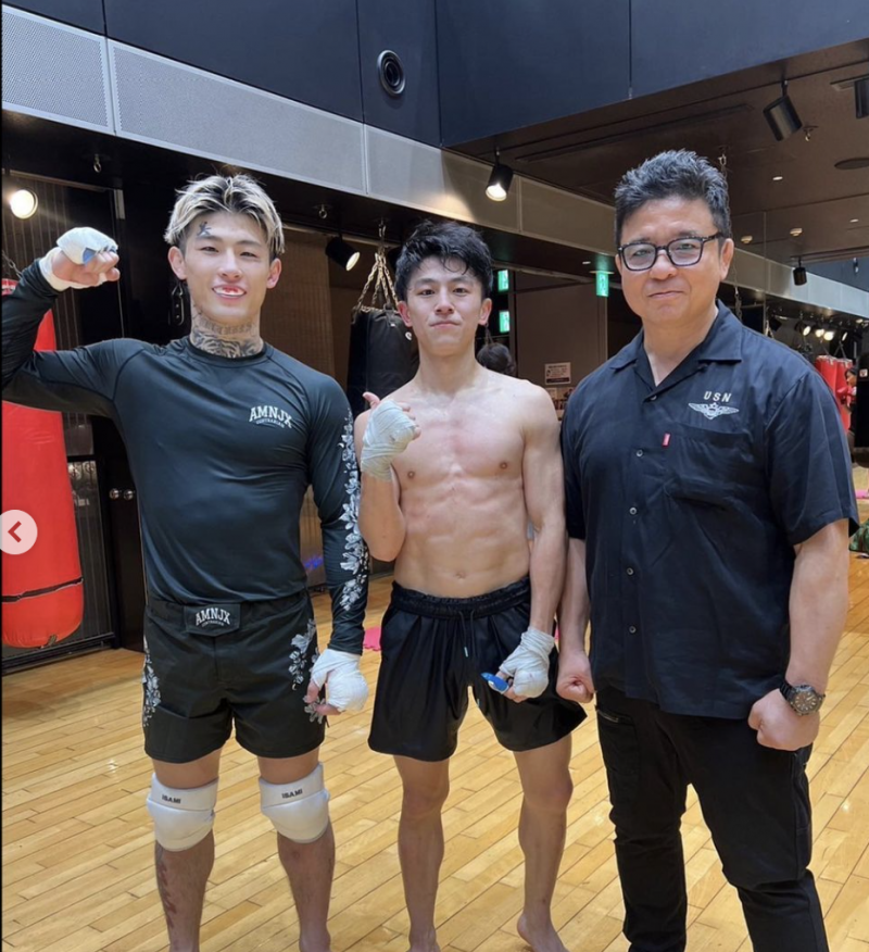 左から平本、吉成、剛毅會岩﨑宗師(剛毅會提供)