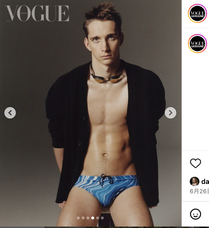 今年の水泳世界選手権で50mフリースタイル優勝のウラジスラフ・ブホフ(VOGUEウクライナインスタより)