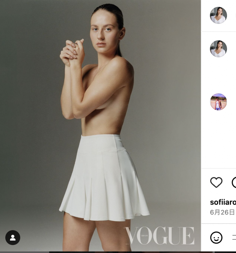 人気テニス選手マルタ・コスチュクは上半身裸で大胆ポーズ(@martakostyukより)
