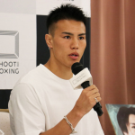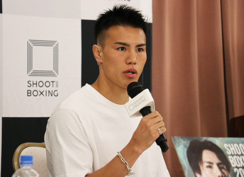 会見でコメントする海人