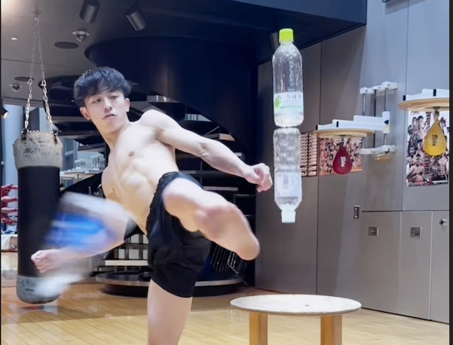 名高がペットボトル3段蹴り!1段目を蹴った瞬間(吉成名高TIKTOKより)