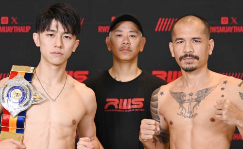 メインイベントで対戦する名高・エイワスポーツジム(左)とジョムホート・コースワンタット(右)は共に計量パス(C)RWS JAPAN