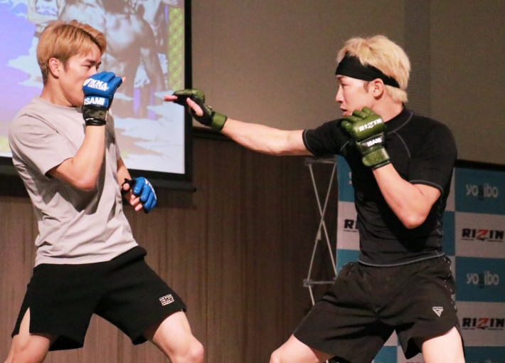 公開練習に登場した朝倉未来(右)は弟・朝倉海とのスパーリングを行った