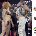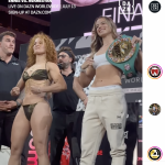 王者ニコルソンが白のビキニショーツで計量パス、挑戦者は際どいTバッグ下着で対抗!(ニコルソンインスタより)