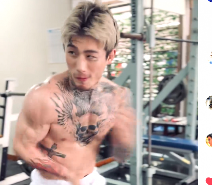 7月3日に公開したシャドーをする平本。二の腕と肩の筋肉のバルクが凄い!(@ren___k1)