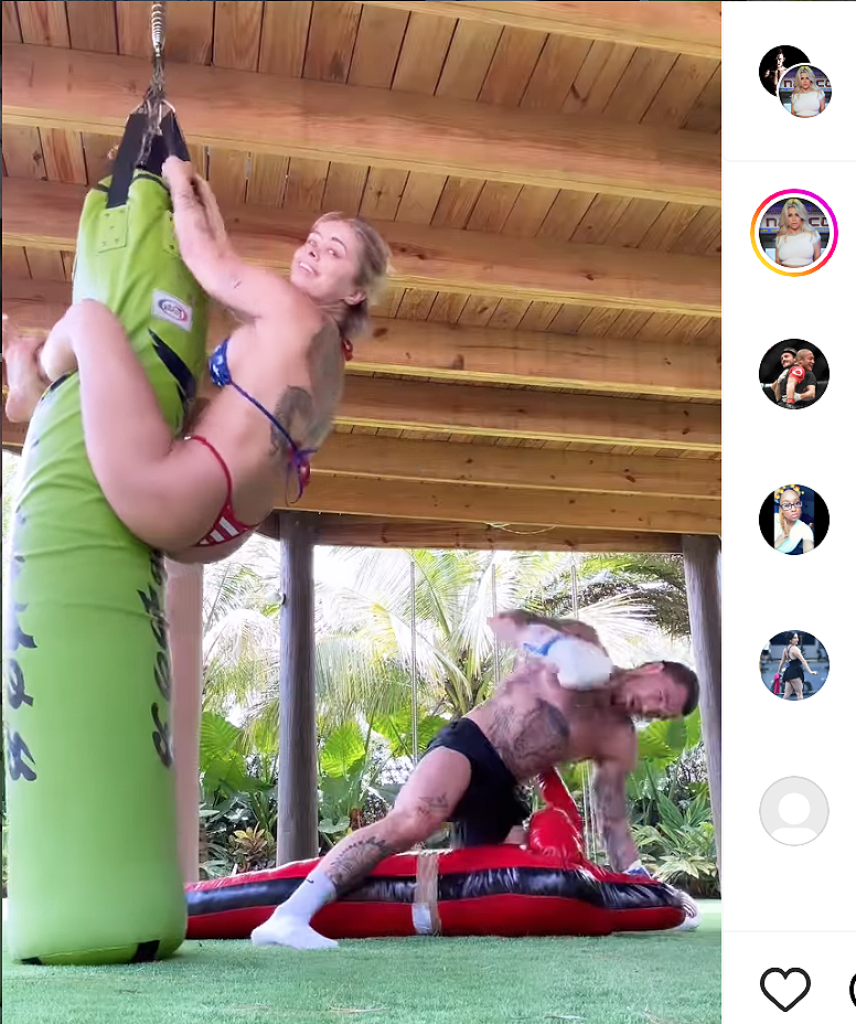 ヴァンザントはサンドバッグによじ登る@paigevanzantより