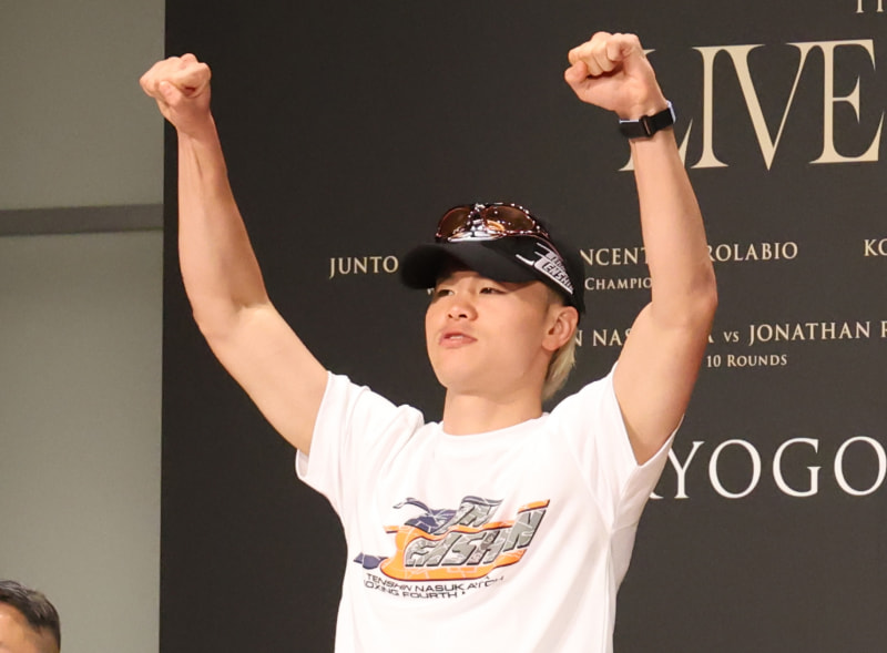 那須川天心、両手をあげアピール!「宇宙人が来たと思う試合を」と意気込んだ(7月18日・都内)