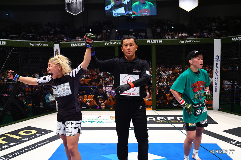 万智(左)が修斗王者の渡辺(右)に判定勝利