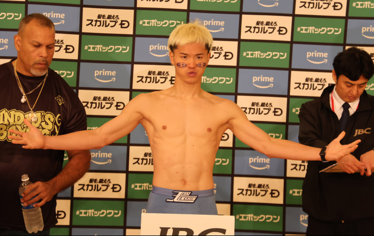 両手を広げる那須川