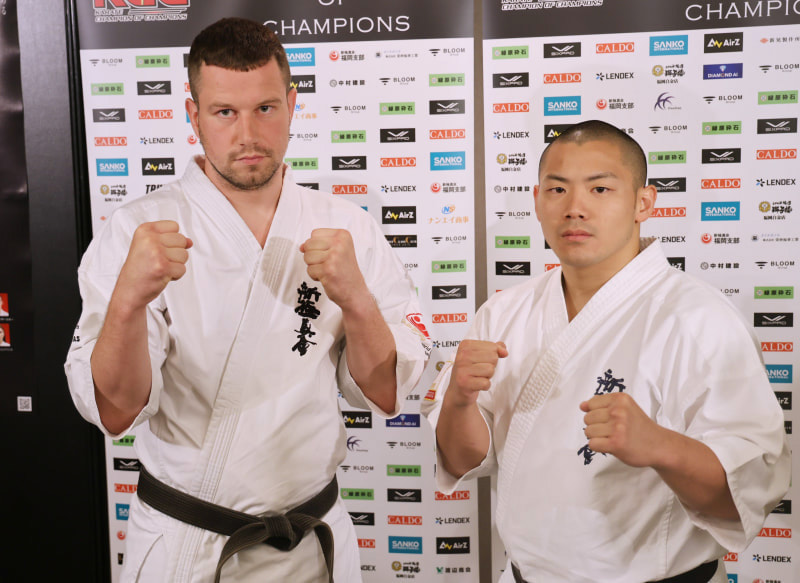 左は優勝候補で身長189cm100kgの世界重量級王者エヴェンタス。右は日本優勝を狙う170cmの世界8位の渡辺優作。対戦実現は決勝戦となる