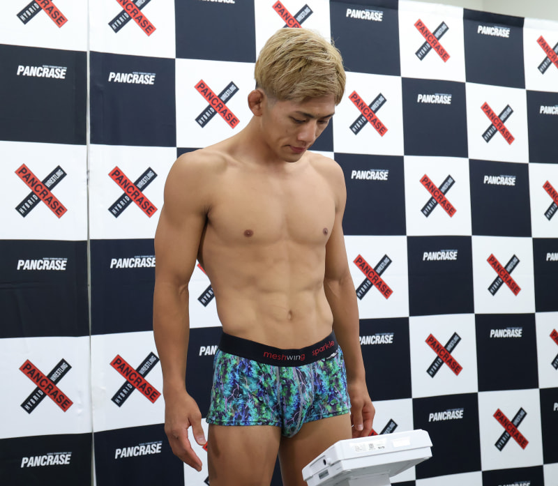 鍛え上げたれた肉体で計量台に乗る伊藤