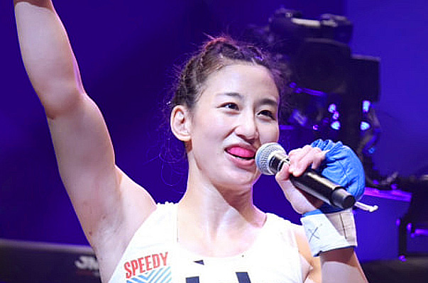 杉山しずか、マッスルな腕でチョークで仕留め一本!割れた腹筋にも注目