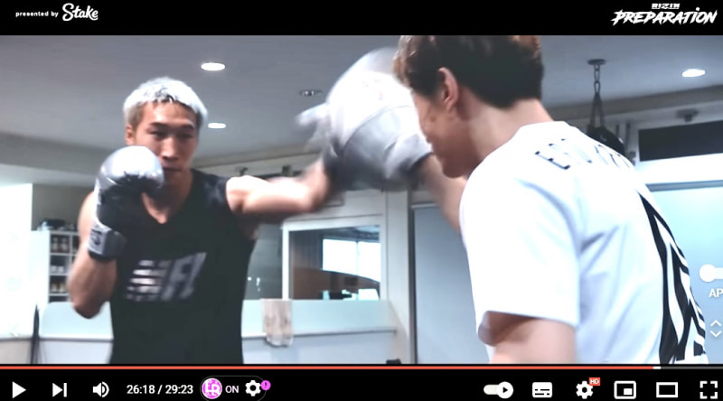 中尾氏のミットに打ちこむ (RIZIN YouTubeより)