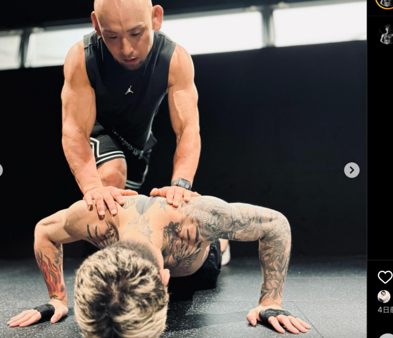 24年7月19日に公開、腕立てトレーニングする平本(下/@ren___k1)
