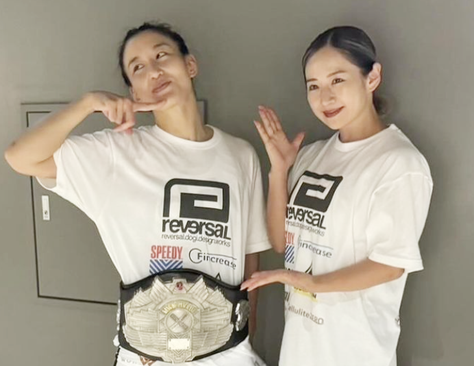 杉山しずか(左)を愛川が祝福した@aikawa_yuzuki