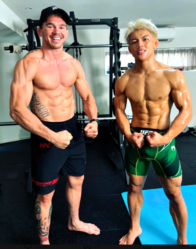 22日に投稿したヒロヤのバッキバキボディ。左はビリーコーチ(@abc_baki)