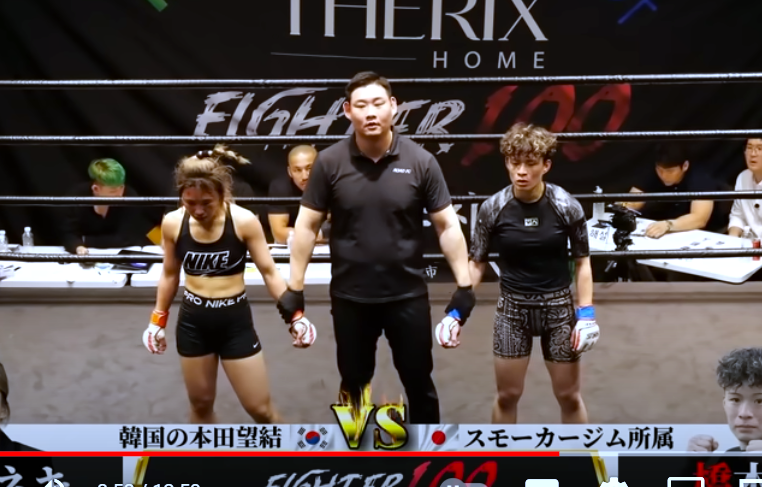 橋本葵(右)と筋肉ネキ(左)の試合がドローとなり反日ジャッジと批判が浮上(『ノッコン寺田』YouTubeチャンネル)