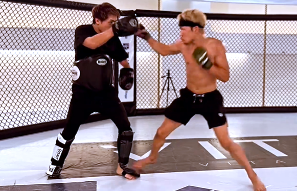 上下にパンチを打ち分ける朝倉(@mikuruasakura)
