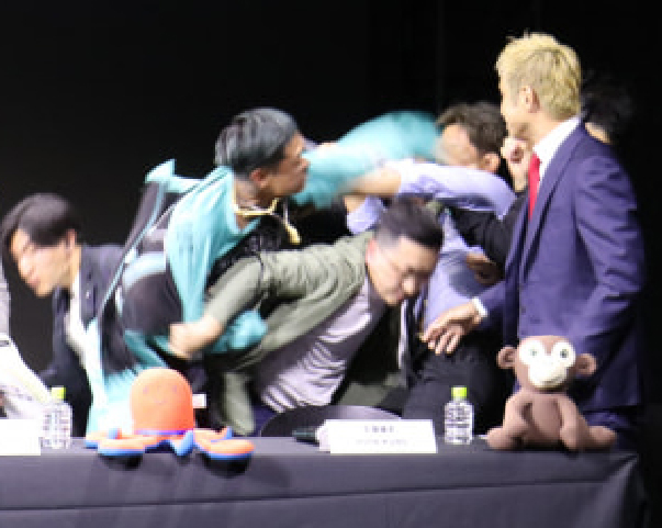 芦澤のパンチが皇治の顔に!まさに素手ボクシング状態の乱闘!