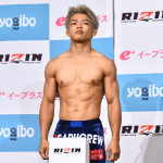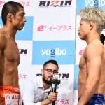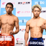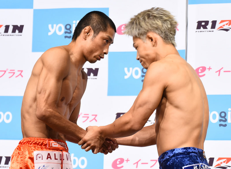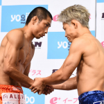 計量後がっちりと握手を交わす所(左)とヒロヤ