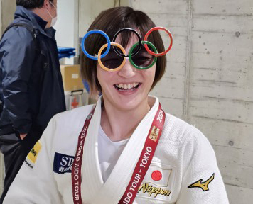 ぶっ飛んだ五輪デザインのサングラスをつける角田(23年12月)