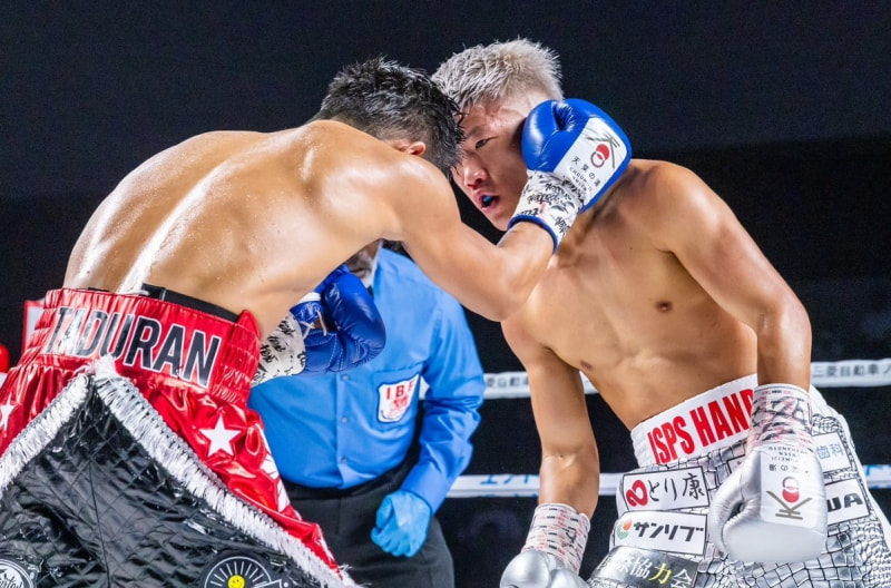 パンチを当てるタドゥランⒸ亀田プロモーション