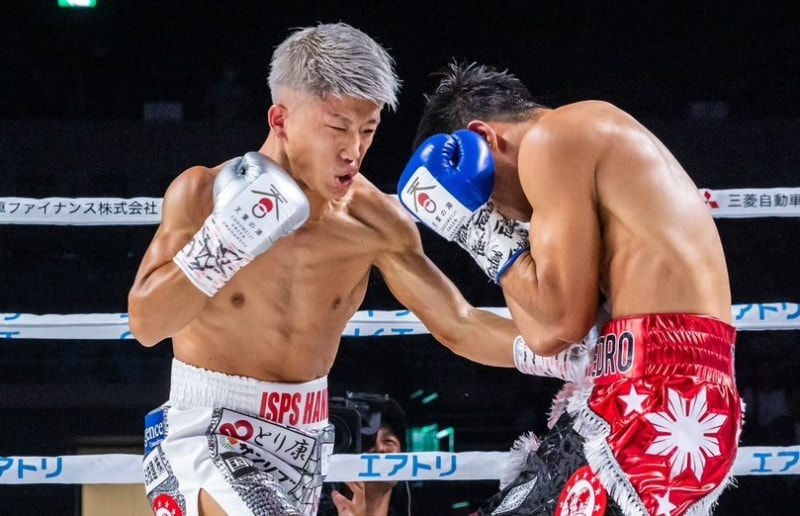 ボディを攻める重岡Ⓒ亀田プロモーション