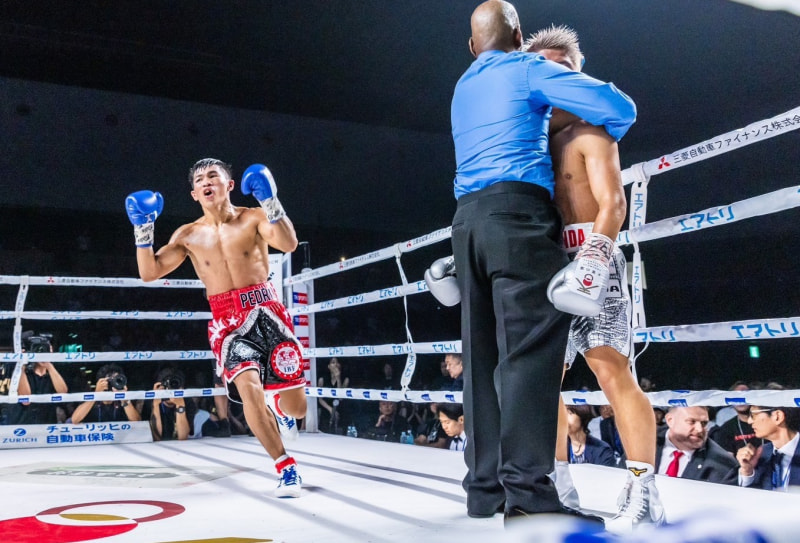 レフェリーストップ、TKOとなったⒸ亀田プロモーション