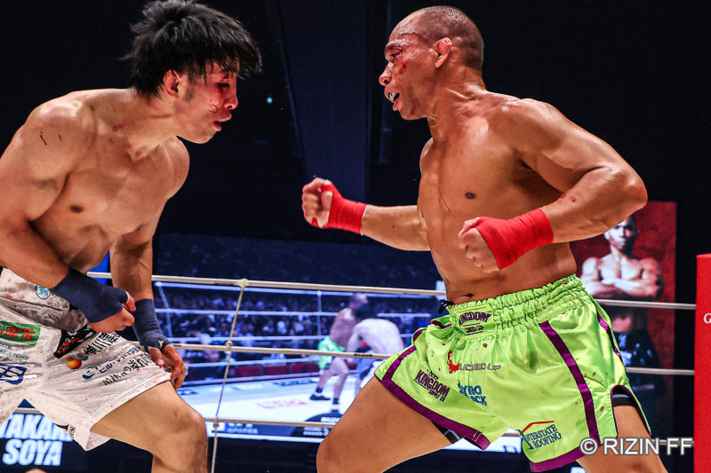 顔を腫らしながら真っ向勝負の征谷©️RIZIN_FF
