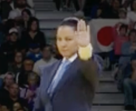 主審はしっかり運営席に向け「待て」ポーズ(テレ東スポーツ YouTube)