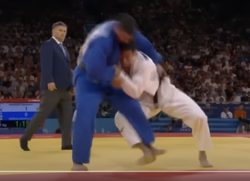 まずは足を刈る。この時点で小外に見える(@ntvsports)