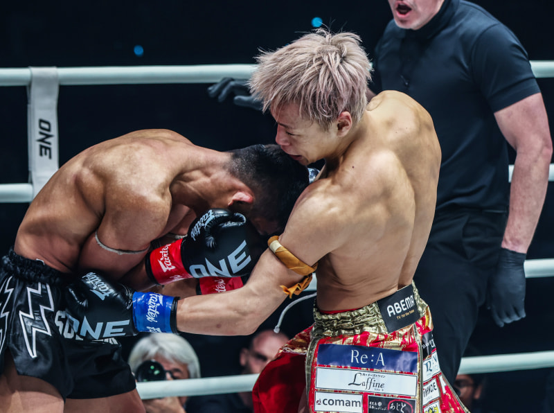 武尊(右)がスーパーレックにボディを効かせる(C)ONE