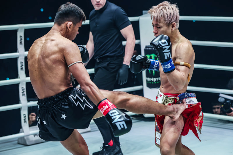 今年1月、ONEデビュー戦でスーパーレックに強烈なローを効かされる (c)ONE