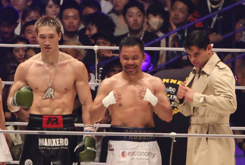 超RIZIN3で安保(左)、パッキャオ(中央)、ガルシア(右)が並んだ