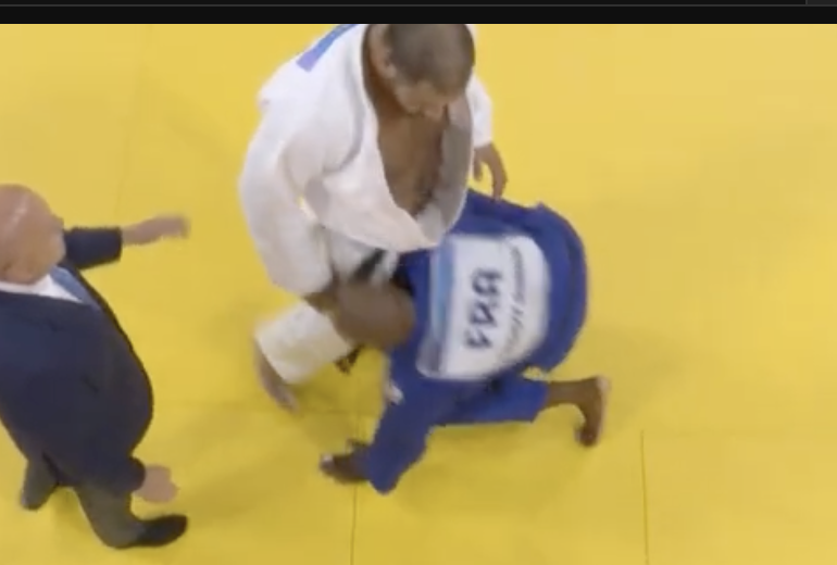 立ち上がるリネールにヒザ蹴り!(テレ東スポーツYoutube)