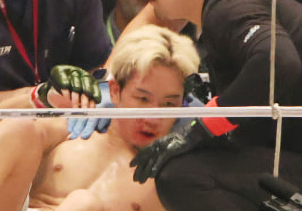 KO負け直後の朝倉、口の周りが鮮血に染まる
