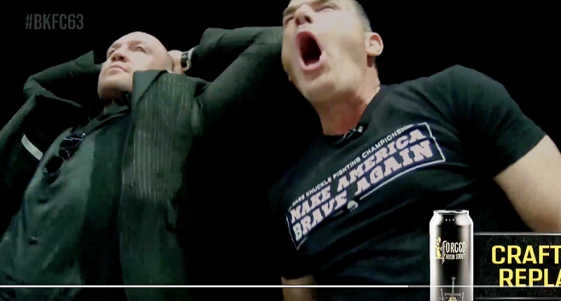 マクレガー(左)は興奮して立ち上がり茫然、BKFCフェルドマン社長(右)は大歓声@bareknucklefcより