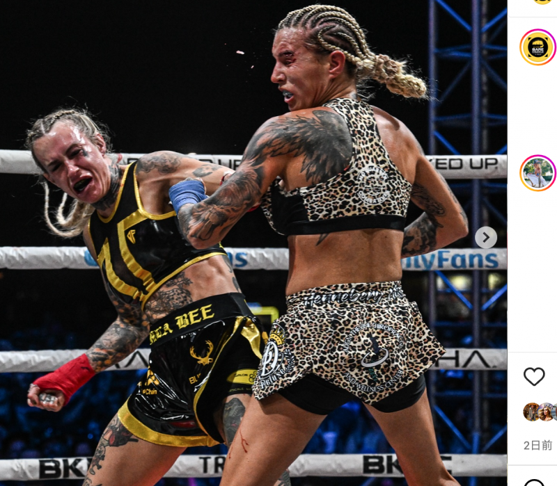激しく打ち合う両者@bareknucklefcより
