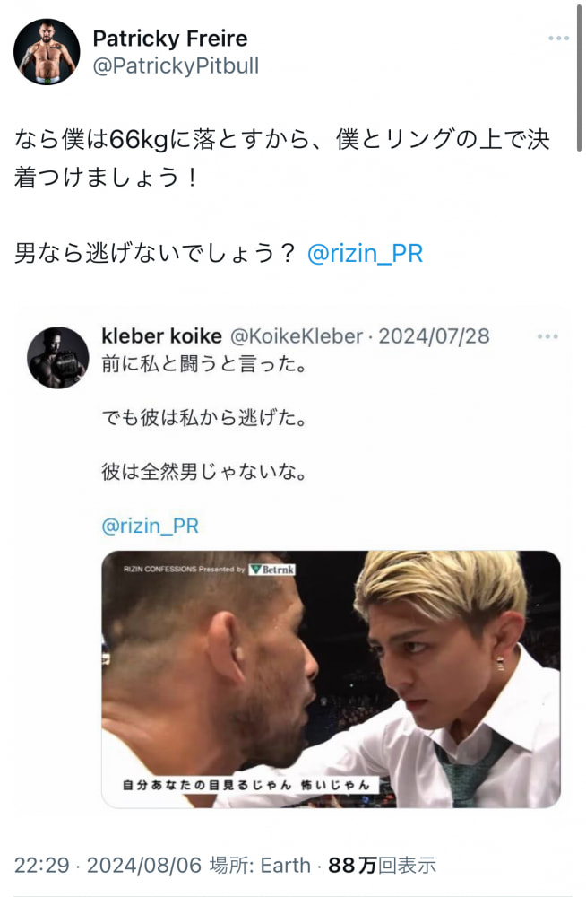 クレベルに対戦要求をするパトリッキー(@PatrickyPitbullより)