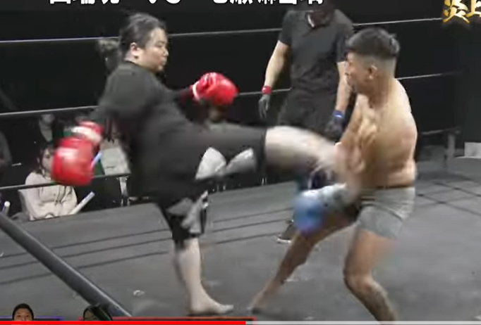 七瀬のミドルキックが相手に炸裂(【公認】Repezen Foxx RoomYouTubeチャンネル)